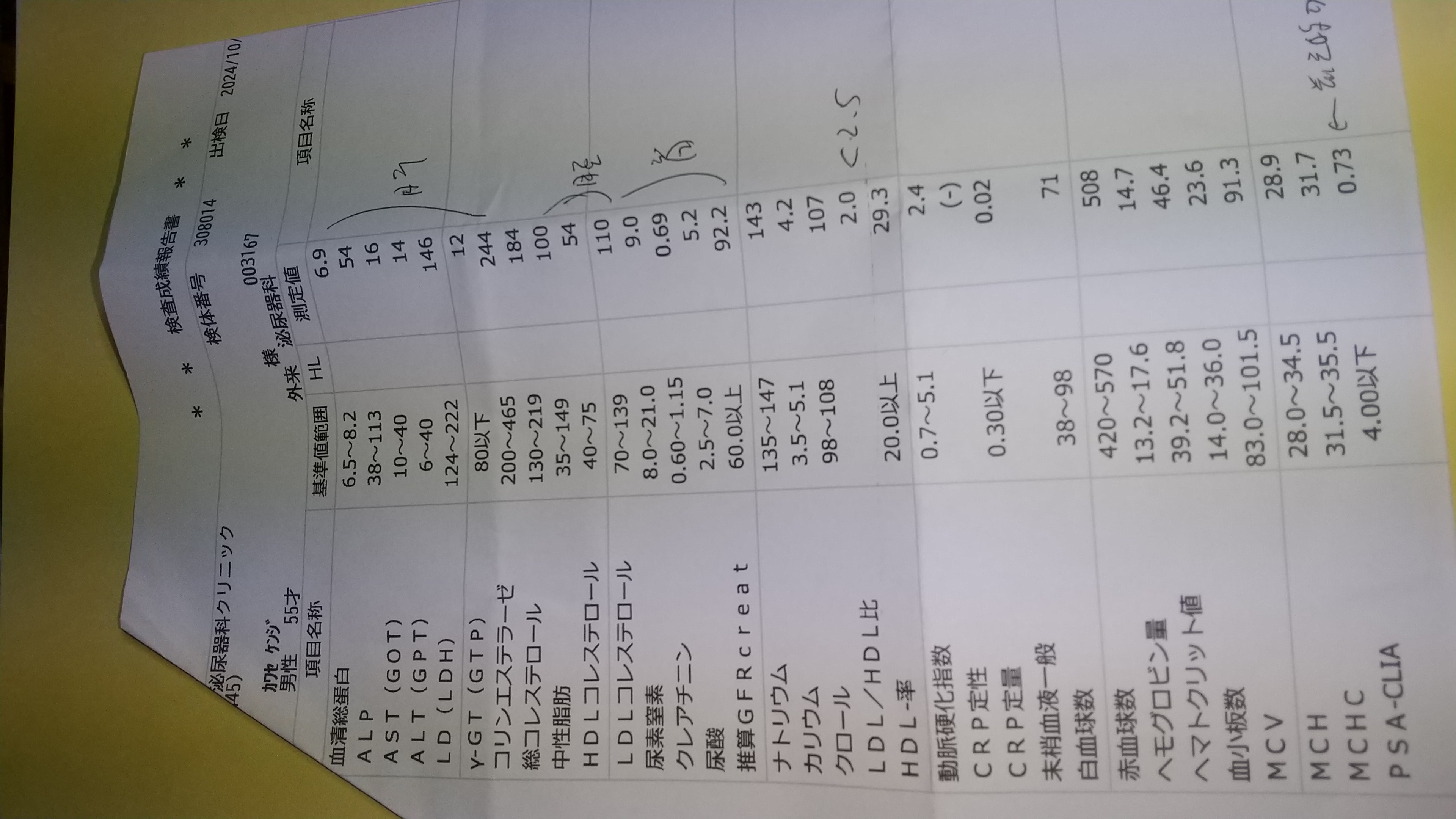 PSA(前立腺腫瘍マーカー)検査の結果 |